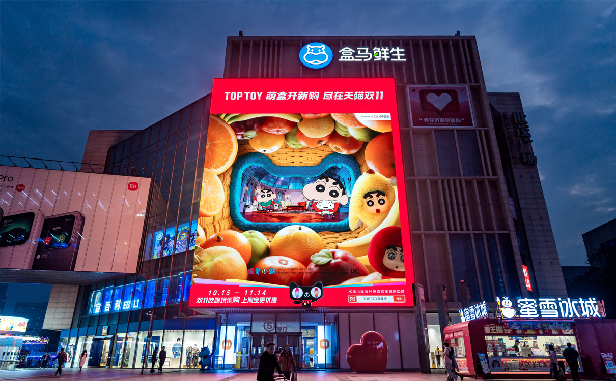 (世茂廣場(寬厚里)·裸眼3D戶外LED屏 上刊品牌:阿里魚《蠟筆小新雙11》)
