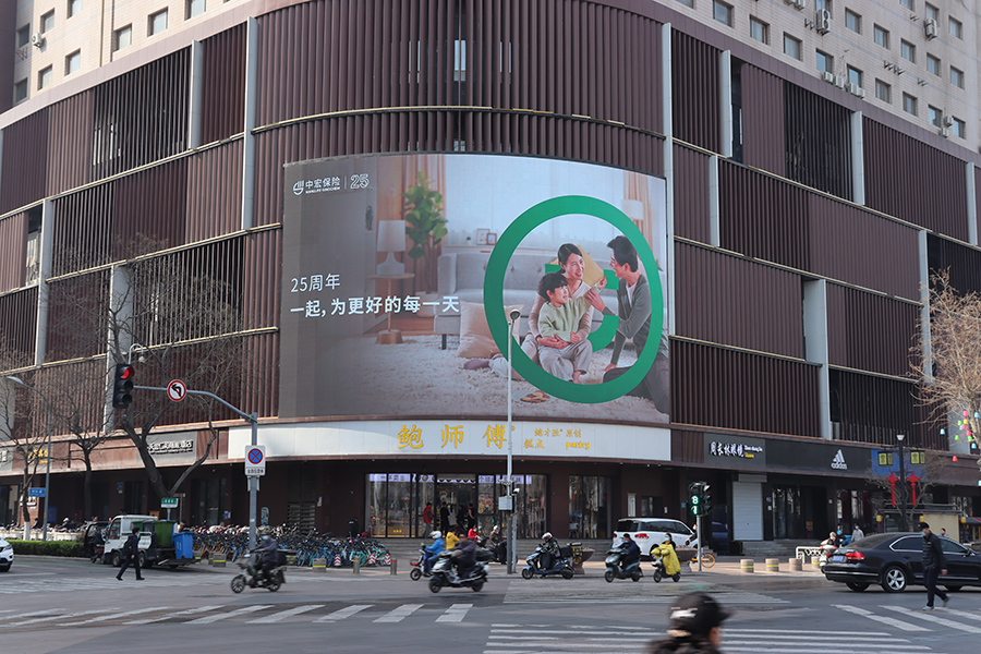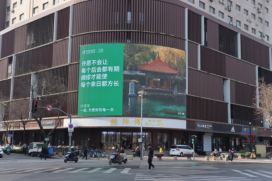 (中宏保險投放“省俯”濟南泉城路彩云大廈戶外LED屏廣告)