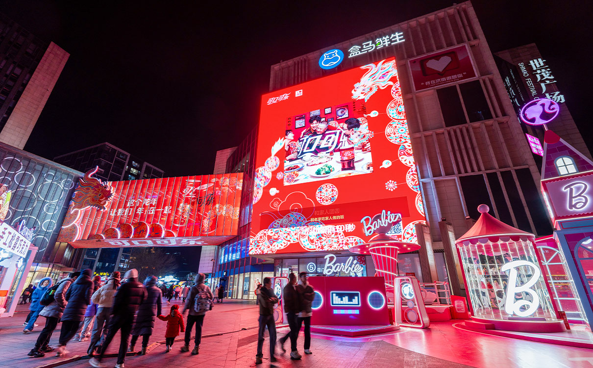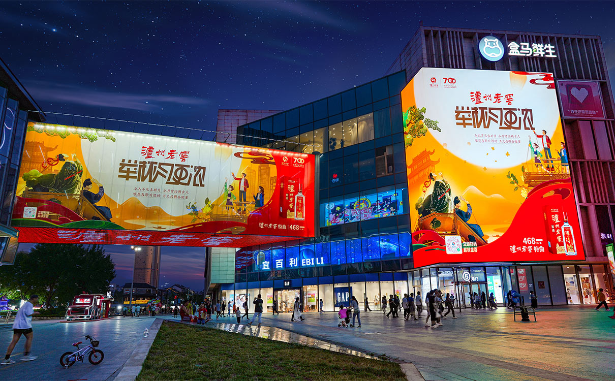 #橋體位于商業街區的出入口及活動廣場上方,超級巨幅尺寸擁有強大的視覺沖擊力#