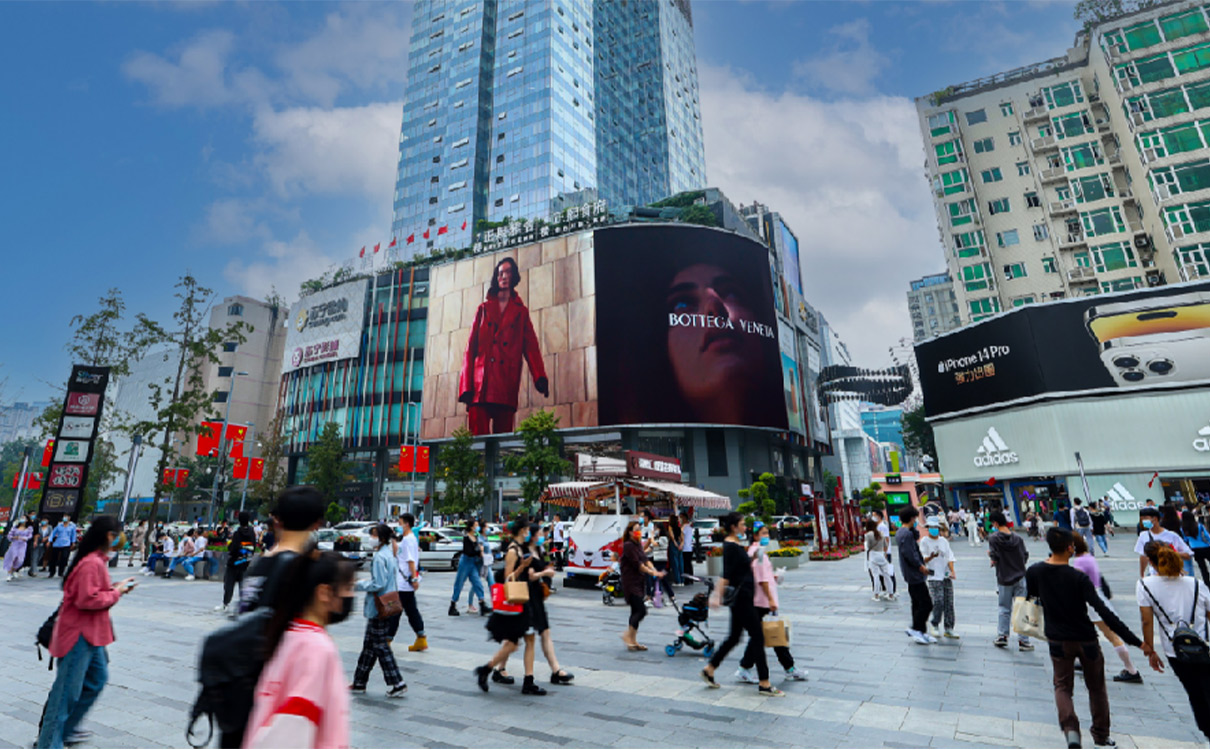 【媒體屬性】位于春熙路央心位置,765平米的媒體面積,人群觀看距離近、沖擊力極強(qiáng)