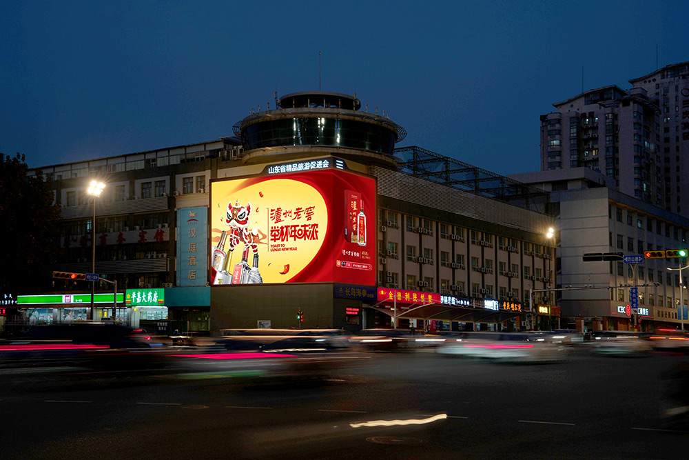 (瀘州老窖投放濟(jì)南齊魯國(guó)際大廈戶外LED屏)