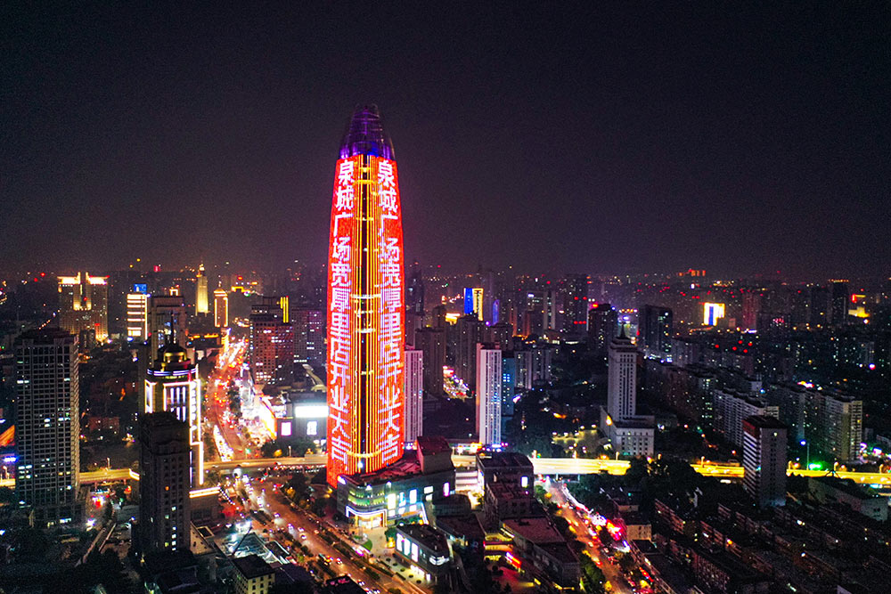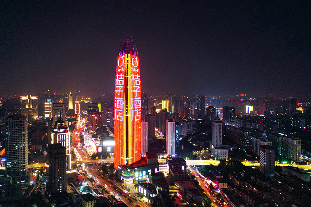 (桔子酒店投放濟南地標媒體--濟南綠地中心廣告)