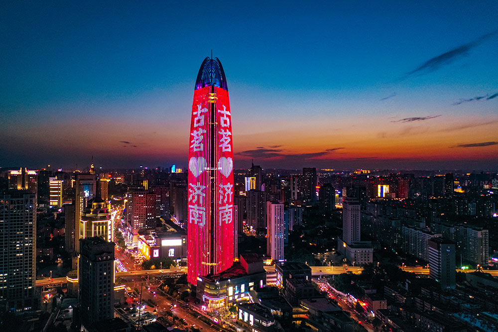 濟(jì)南地標(biāo)媒體燈光秀(即,簡稱綠地高媒),是山東華途文化傳媒有限公司獨(dú)家運(yùn)營的濟(jì)南地標(biāo)媒體,濟(jì)南綠地中心素有“泉城之根”、“濟(jì)南之根”之稱,面積63000平方米、呈三面環(huán)繞360度展示,具有超大面積、超強(qiáng)視覺沖擊、變幻豐富多樣及受關(guān)注高、視覺渲染力極大等優(yōu)勢(shì)。