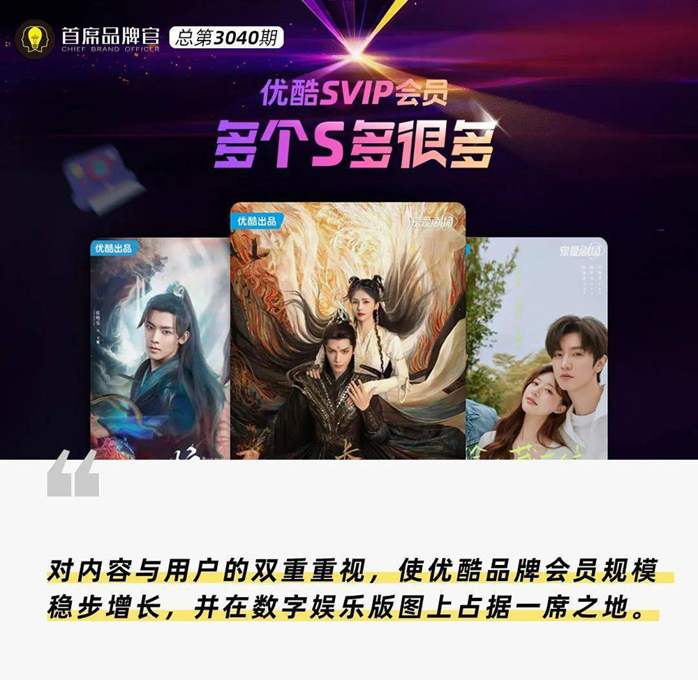 優酷在提供優質內容方面不斷深化,并以此作為品牌的核心競爭力。多年以來,優酷始終視精品內容為平臺的價值底色和用戶粘性的基石。立足于內容,優酷必將在數字娛樂領域繼續發光發熱,以精品內容不斷提升品牌影響力,滿足用戶對優質資源的追求。