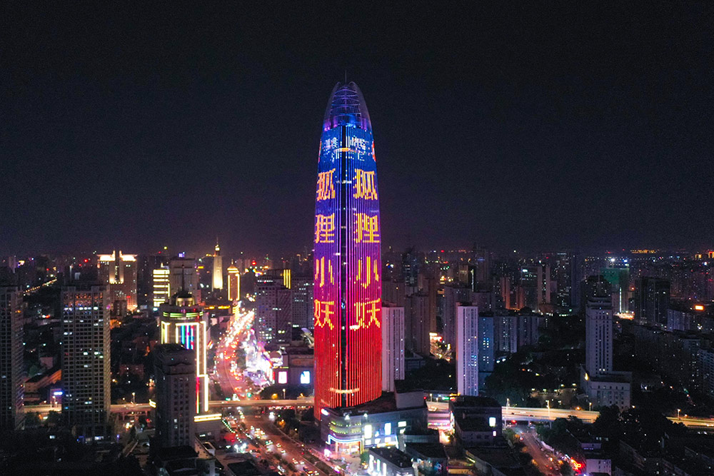 (狐貍小妖投放濟南地標媒體--濟南綠地中心廣告)