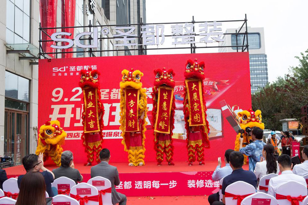 在絢爛的禮花和在場嘉賓的見證下,各位領導共同進行揭牌和剪彩儀式,吉祥瑞獅為圣都送上“開業大吉、八方來財,生意興隆,大展宏圖”的祝福,祝愿濟南圣都整裝財源廣進,蒸蒸日上。