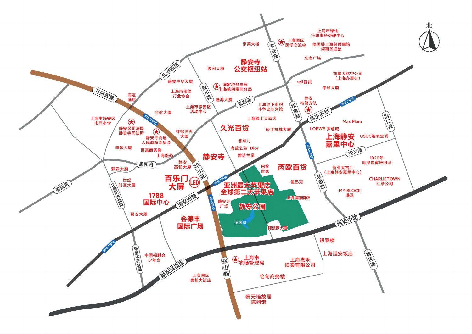 位于上海市中心十字軸心的重量級商圈—靜安寺商圈,云集眾多世界奢侈品品牌,精準鎖定高端消費人群。正對靜安寺商圈熱鬧的黃金寶地—南京西路與華山路交叉口人車流,靠近上海交通要道延安路高架,同時匯集地鐵2、7、14號線及眾多公交線路,人車流量龐大。覆蓋靜安“國際商務港”核心標志性地區,眾多國際品牌企業在辦公樓即可看到大屏廣告。