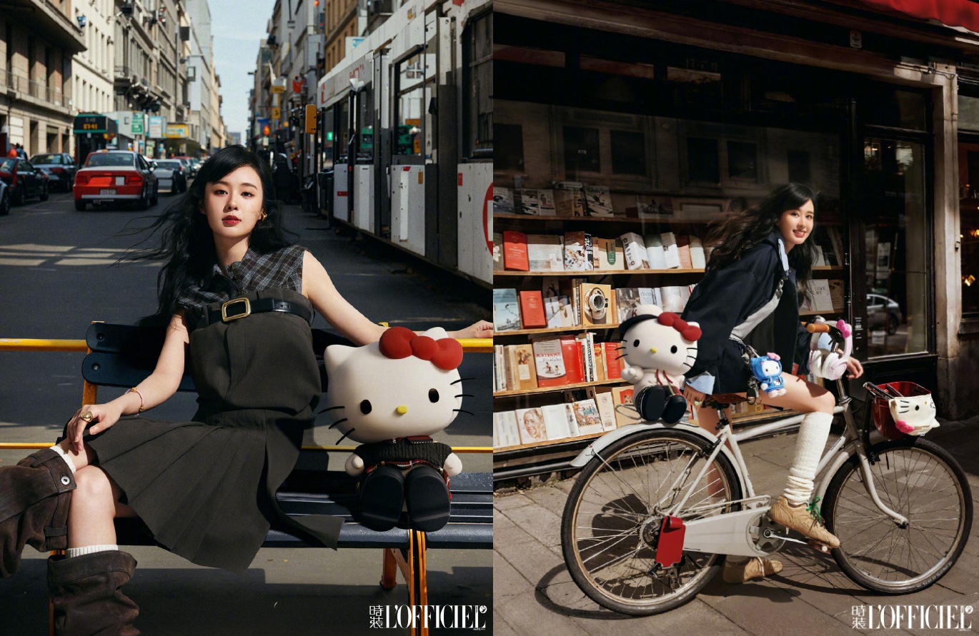 在本次超品日活動中,阿里魚創造性地運用Hello Kitty 專利格紋為她打造了此次活動的專屬套裝。身著新套裝,Hello Kitty坐上熱氣球飄揚過海來到中國,亮相《時裝L'officiel》雜志封面,這也是她首次登上國內時尚雜志封面。由《時裝L'officiel》“操刀”,Hello Kitty與明星好友鄭合惠子、天貓吉祥物貓天天合體拍攝大片,在大街小巷City walk,融入城市煙火氣。