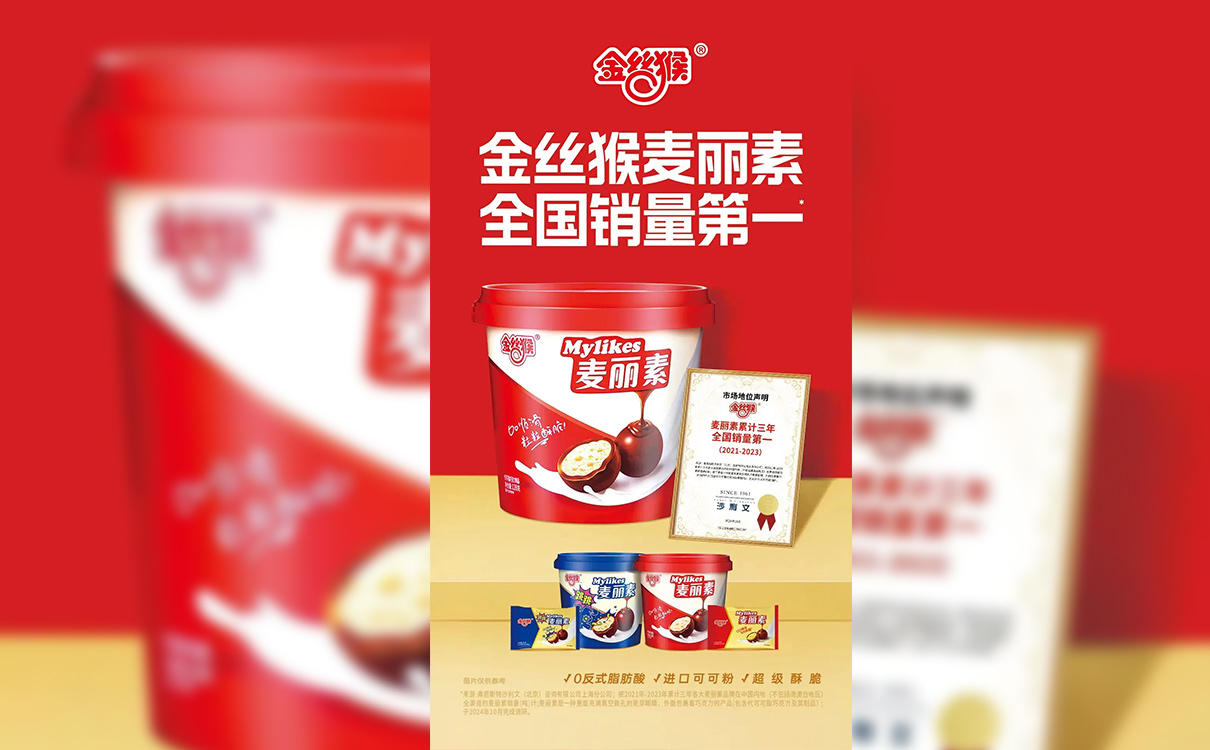 在這一浪潮中,國民甜蜜巨頭金絲猴食品也加碼其中,在豐富的糖巧行業經驗下,憑借敏銳的市場洞察力,在國外產品基礎上創新優化,推出了更為符合國人口味的麥麗素,把傳統與創新糅合進每一粒麥麗素,在糖巧市場上掀起了一股新的潮流。據權威機構弗若斯特沙利文今年10月份發布的認證顯示,金絲猴食品麥麗素已累計三年(2021—2023)成為麥麗素品類全國銷量第一。這一權威認證,不僅代表了金絲猴食品在麥麗素品類中的市場領導地位,也是對其多年來堅持品質、不斷創新的肯定。