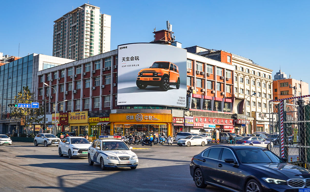 (花園路與山大路(德云社廣場)戶外LED屏 上刊品牌:奇瑞汽車)
