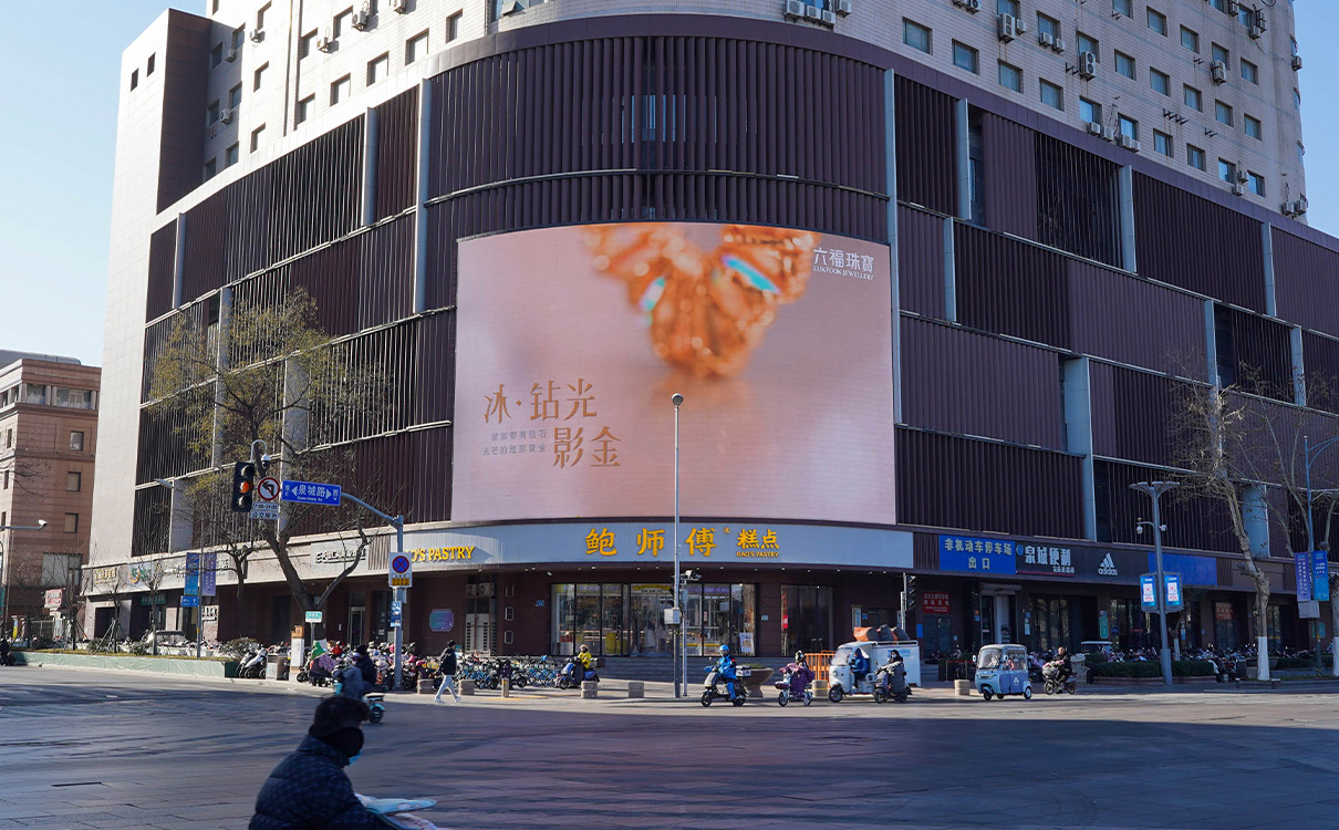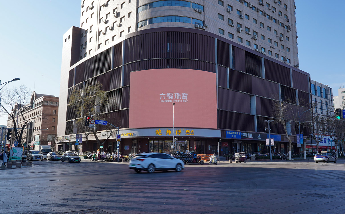 (彩云大廈(山東省政府)戶外LED屏 上刊品牌:六福珠寶)