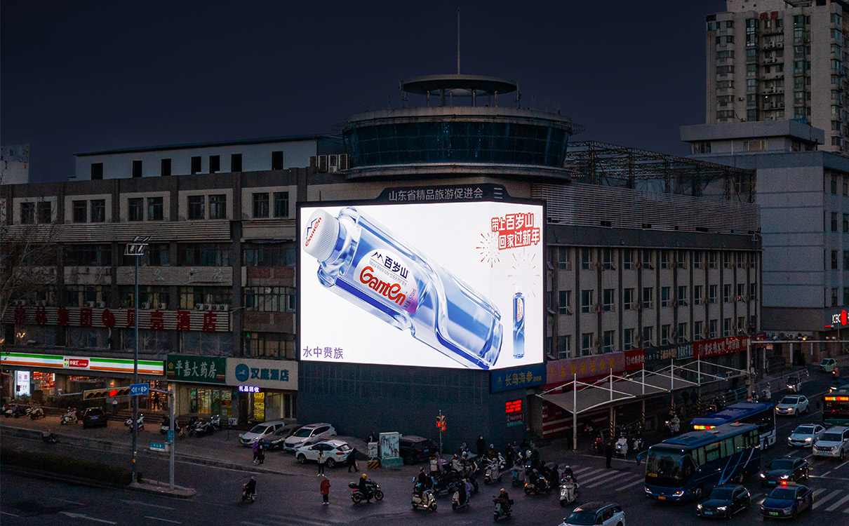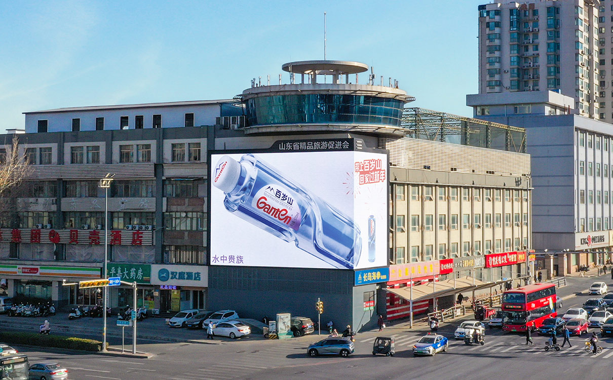 (經(jīng)十路與歷山路·裸眼3D戶外LED屏 上刊品牌:百歲山)