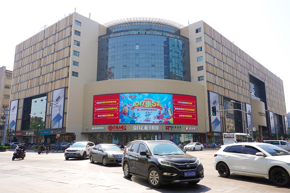 (國美電器投放“經十屏”銀座和諧廣場戶外LED屏廣告)