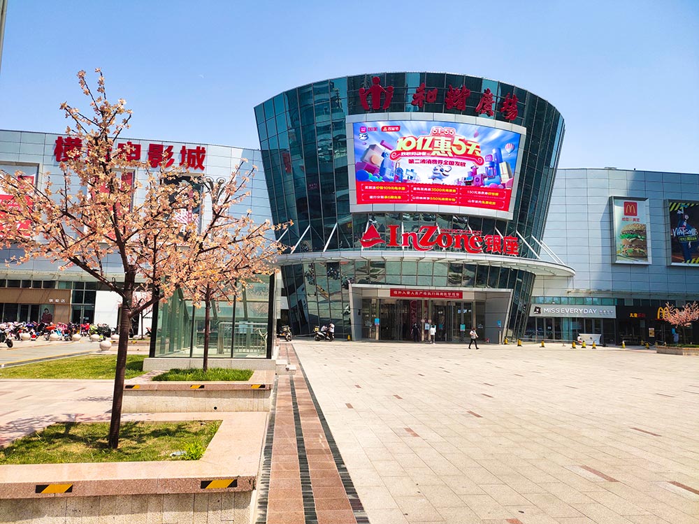 (楊柳春風投放“軍區商圈屏”銀座八一購物廣場戶外LED屏廣告
