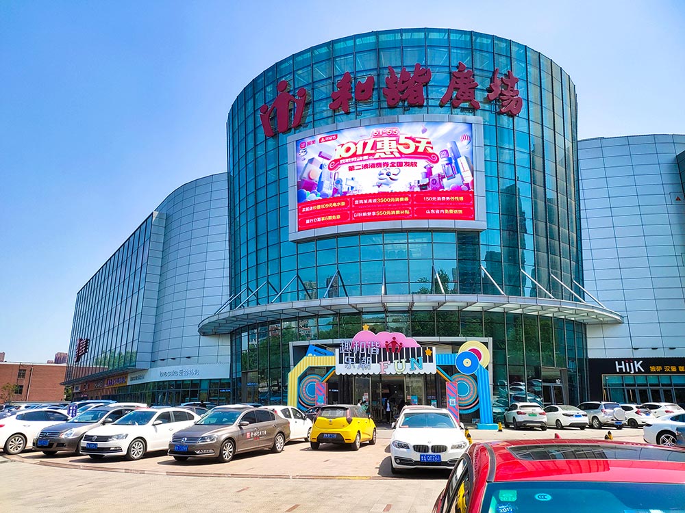 (國美電器投放“雙子屏”章丘銀座和諧廣場戶外LED屏