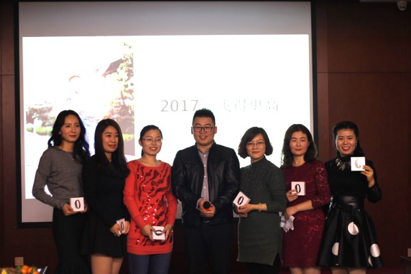 今天每個人都精心打扮,著裝正式隆重,男士西裝女生禮服套裝,把自己美麗展示出來。5分鐘的高媒宣傳片敘述我們一年為眾多品牌合作的點滴瞬間,之后主持人華麗登場后將年會拉開帷幕,年會首先頒發兩項大獎:最佳奉獻獎設計師鄒聰、最佳進步獎銷售部趙國輝。這兩位同事都有華途小伙伴身上共有的特質:勤奮、有責任心、專業。公司總經理武亞峰和副總經理蘇慧跟大家一同總結16年展望17年,并且武總還給每個同事準備了禮物小米手環,他希望17年大家能動起來保持健康的身體和心態。