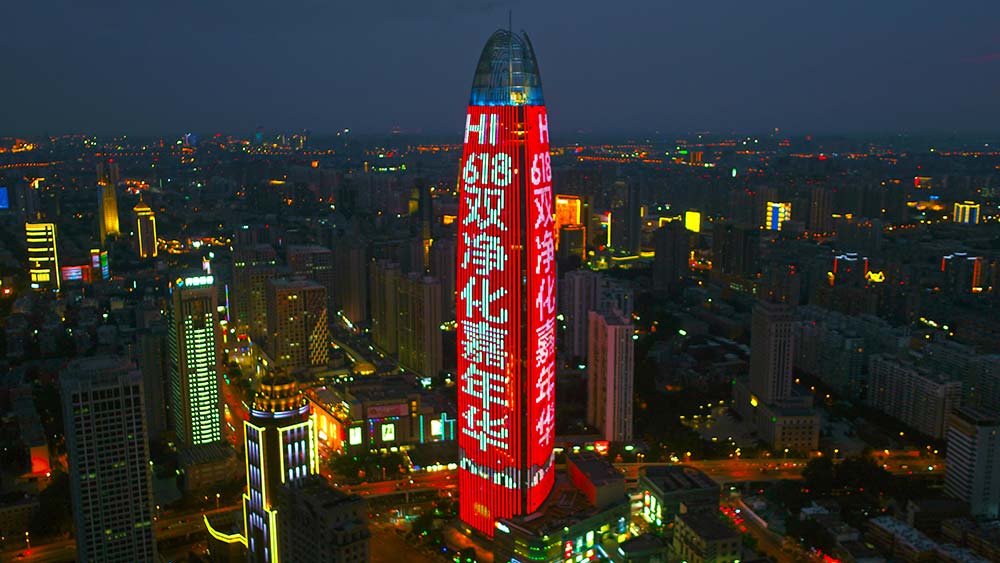 (日立投放濟南地標媒體-濟南綠地中心第一高媒廣告)