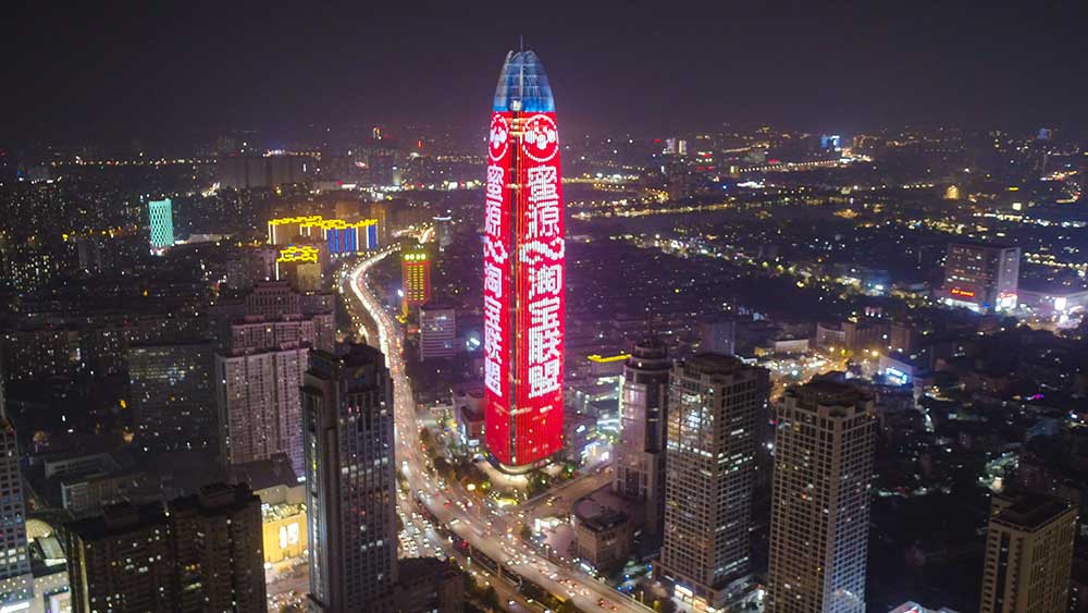 濟南城市地標媒體上演了一場盛大特別的燈光秀。事實上,這場燈光秀背后是蜜源直播間近期持續亮眼的成績。