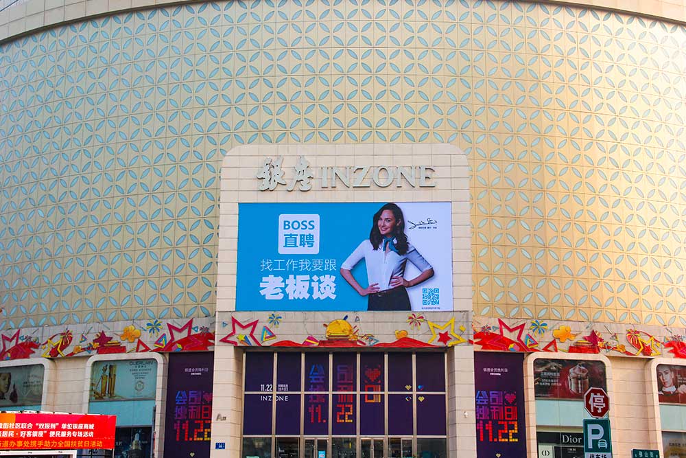 (BOSS直聘投放“旗艦商屏”山東銀座商城旗艦店戶外LED屏廣告)