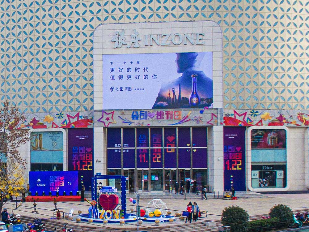 (洋河股份投放“旗艦商屏”山東銀座商城旗艦店戶外LED屏廣告)