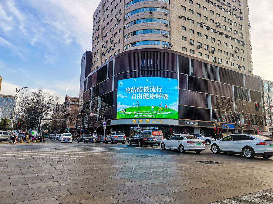 積極響應中國疾病預防控制中心的號召,在3.24世界防治結核病日宣傳期間,通過與山東華途傳媒的合作在地標性建筑濟南綠地中心及泉城路廣告屏上滾動播放宣傳主題及結核病防治核心知識。地標象征了一座城市的地理核心和精神標高,是約定俗成的城市象征。華燈初上,醒目的宣傳主題和核心知識帶著極大的視覺沖擊力映入公眾的眼簾,通過山東華途傳媒點亮地標的自帶流量和話題度,提醒公眾當前影響人民呼吸健康的不但有新冠肺炎,還有肺結核這一古老的慢性呼吸道傳染病,號召全社會共同參與到結核病防控工作中去。