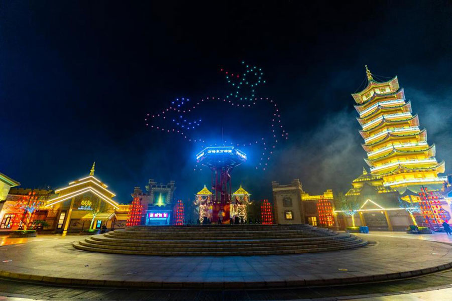 此次方特打造的《無人機激光秀》,演出總時長15分鐘,變幻多端的無人機造型融入穿透力強的激光秀、夢幻的煙霧,組成的全新光影盛宴,會在清明小長假期間持續上演。