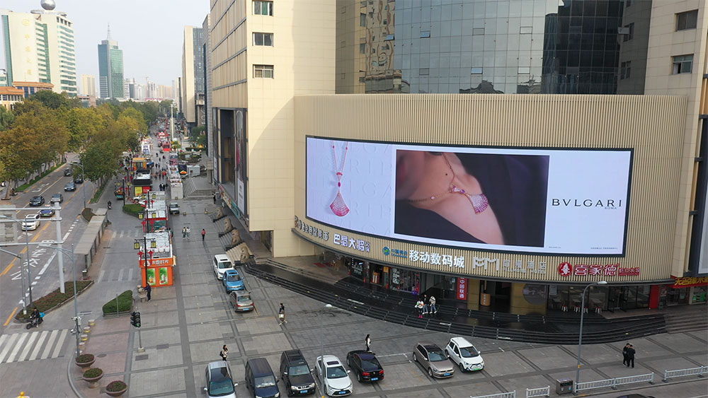 (寶格麗投放“泉眼”泉城路齊魯國際大廈戶外LED屏廣告)