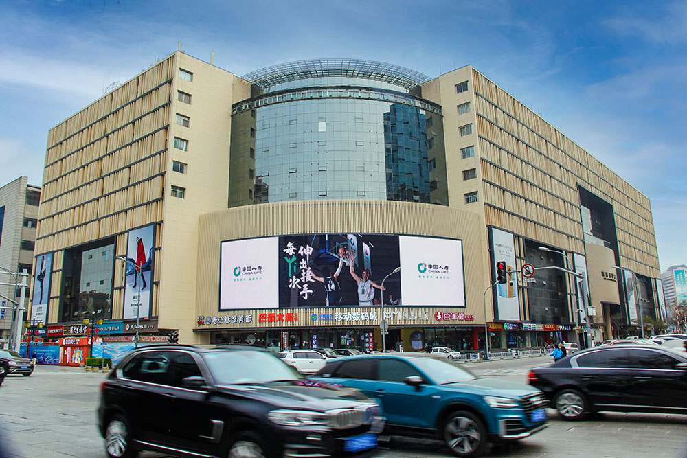(中國人壽投放“泉眼”泉城路齊魯國際大廈戶外LED屏廣告