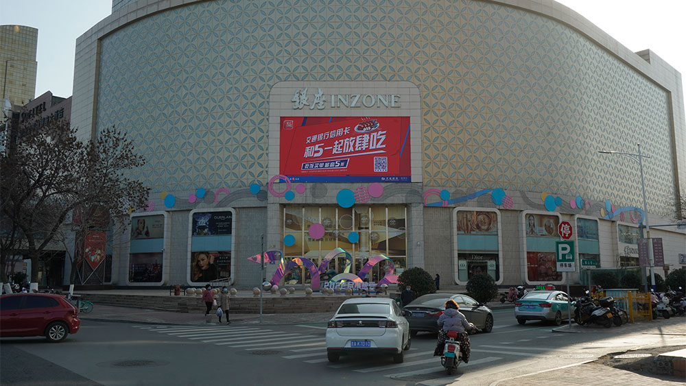 (交通銀行投放“旗艦商屏”山東銀座商城旗艦店戶外LED屏廣告)