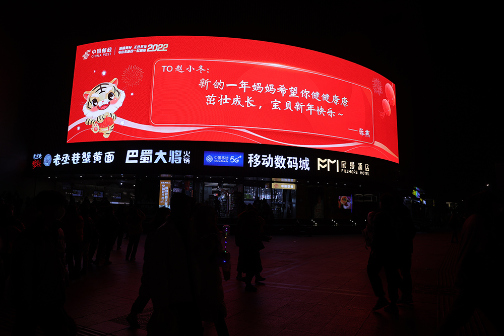 中國郵政作為書信的傳遞者,書信文化的傳承者,致力于弘揚中國傳統(tǒng)書信文化,打造“書信中國”品牌,講好中國故事。“我手寫我心,見字如面。”2021年12月25日至31日,山東郵政推出“2022張賀卡免費寄”活動。只要市民掃描“泉眼”齊魯國際大廈戶外LED屏、“省俯”彩云大廈戶外LED屏、“網(wǎng)紅屏”世茂廣場戶外LED屏上的“山東郵政官微二維碼”,上傳新春祝福語,山東郵政將隨機抽取2022個名額,免費郵寄新年祝福賀卡。