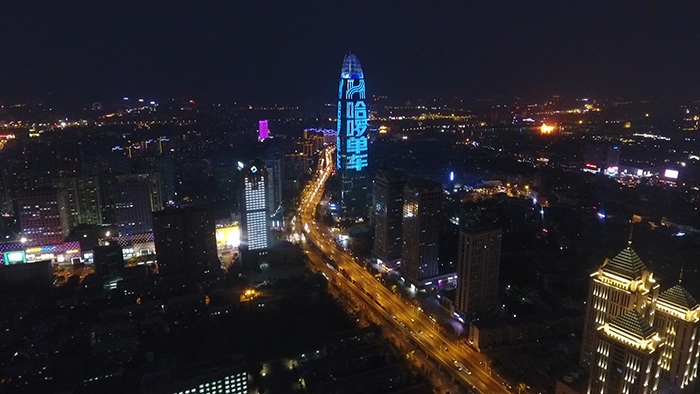 (哈啰單車投放濟南地標媒體-濟南綠地中心廣告)