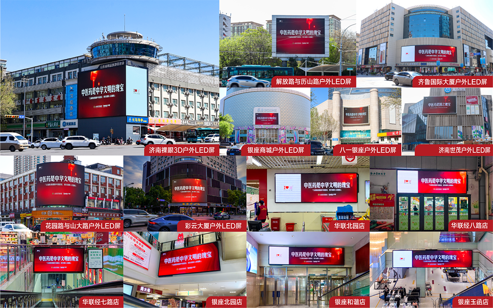 中醫(yī)藥是中華文明的瑰寶,是五千多年文明的結(jié)晶,在全民健康中發(fā)揮著重要作用。如何把中醫(yī)藥這一祖先留給我們的寶貴財富繼承好、發(fā)展好、利用好,成為不容回避的時代考題。山東作為中醫(yī)藥大省,中醫(yī)藥文化源遠(yuǎn)流長,為大力弘揚中華民族優(yōu)秀傳統(tǒng)文化,加強中醫(yī)藥文化宣傳。近日,華途傳媒聯(lián)合山東省中藥協(xié)會共同發(fā)起中醫(yī)藥文化公益推廣行動,該活動通過在濟南市區(qū)戶外LED屏和商超百貨聯(lián)播屏發(fā)布“中醫(yī)藥是中華文明的瑰寶”內(nèi)容,為全面推進(jìn)健康中國建設(shè)、更好保障人民健康持續(xù)助力。